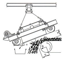 (2)非帶式電磁除鐵器:必須選擇電動(dòng)行走小車(chē) 。以便電控自動(dòng)吸、棄鐵。輕型特別是三吊點(diǎn)的除鐵器,一般選擇電動(dòng)單軌單車(chē)吊掛。重型設(shè)四吊點(diǎn)的除鐵器可以選擇電動(dòng)雙軌或單軌組合行走架。重型設(shè)三個(gè)吊點(diǎn)的可以選擇電動(dòng)單軌組合行走架。